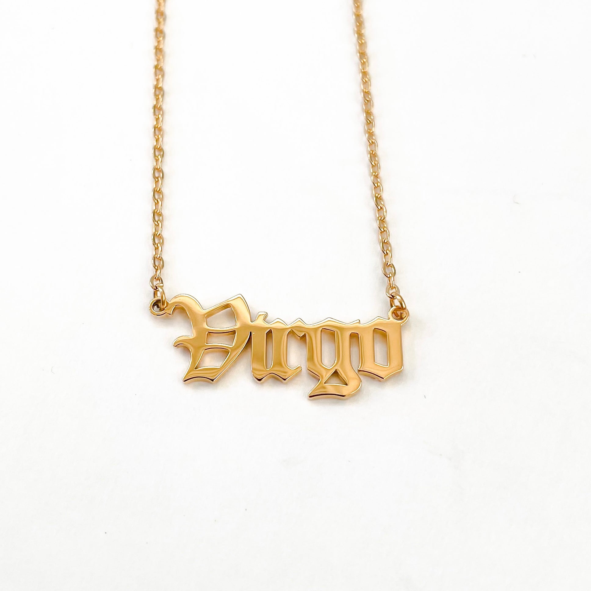 Show the world your astrological sign with this Virgo Necklace in Gold. The old english font gives it a little bit of an edge that you're sure to love. ♍️